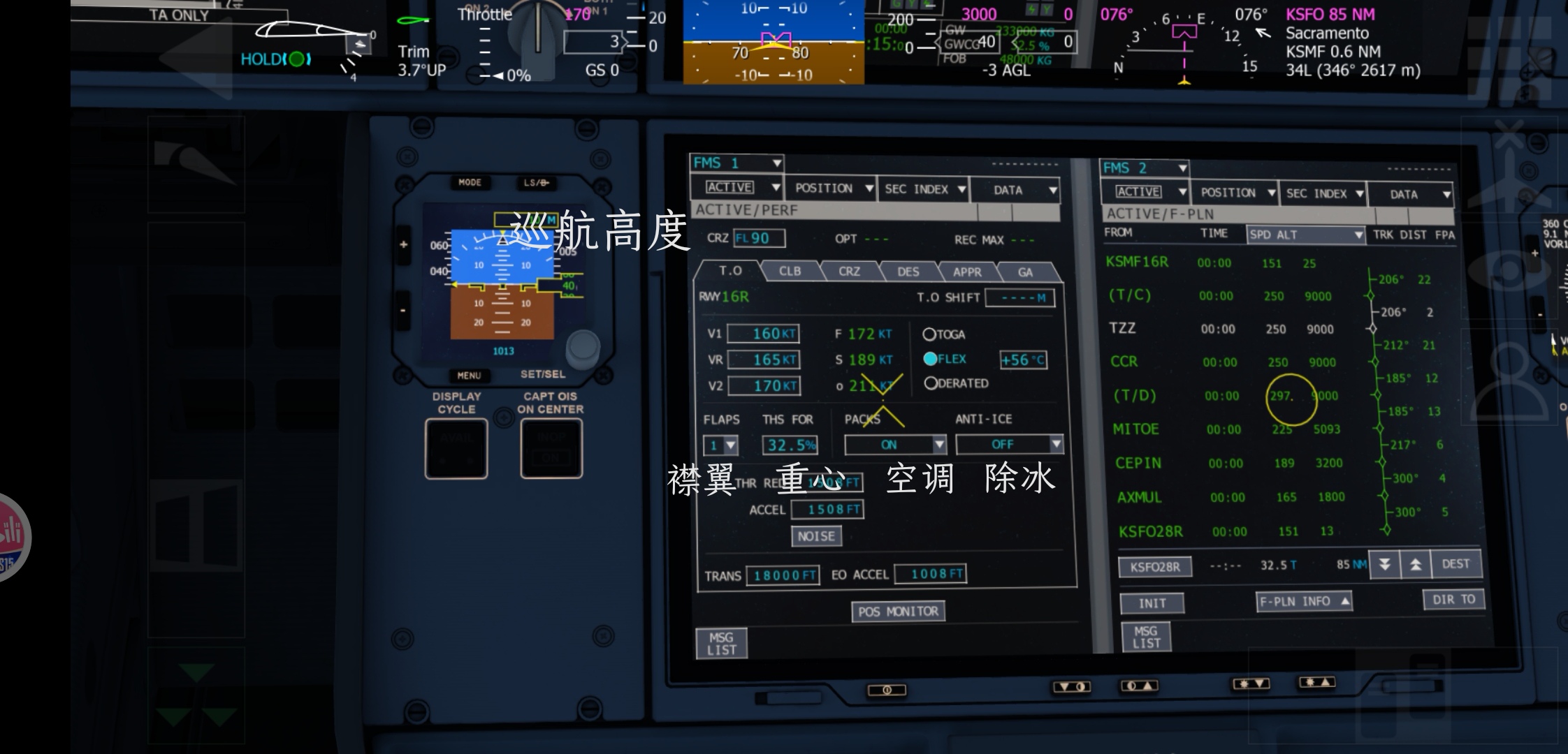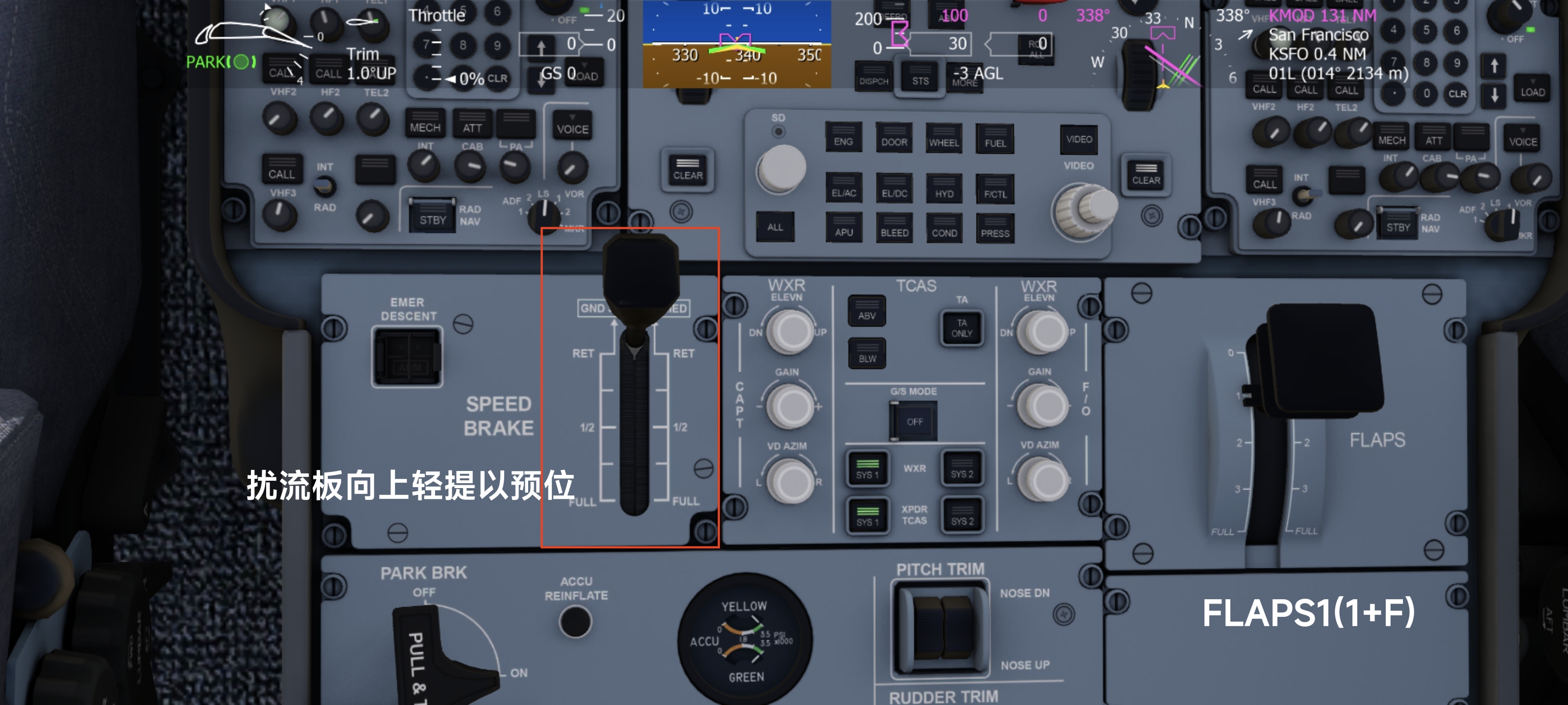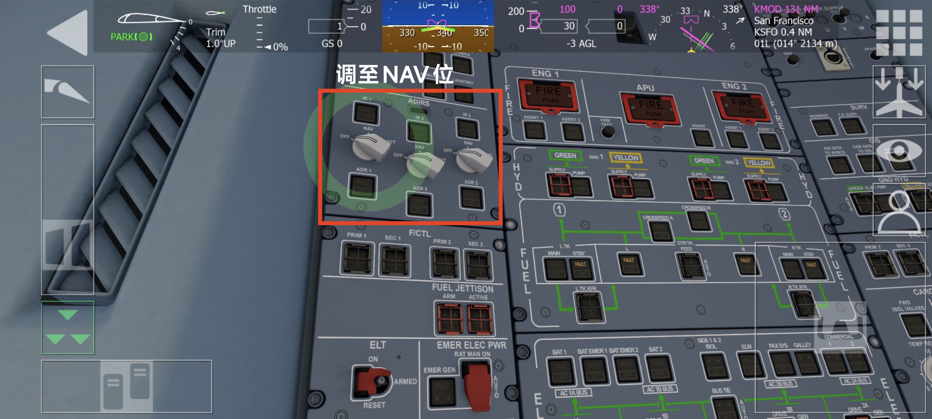 液压、加压、客舱电力等游戏本身已经设置好,本文略过