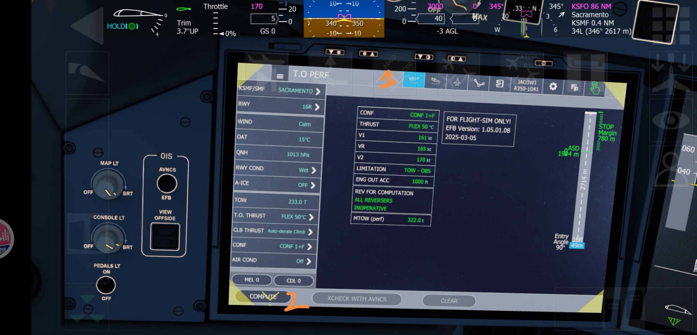 接着点COMPUTER,可以查看起飞性能数据