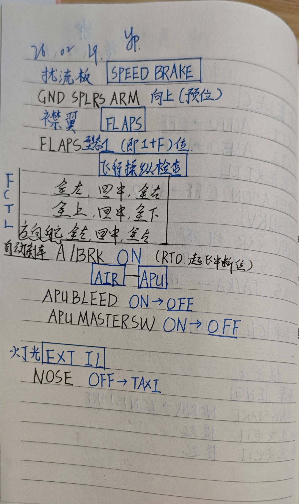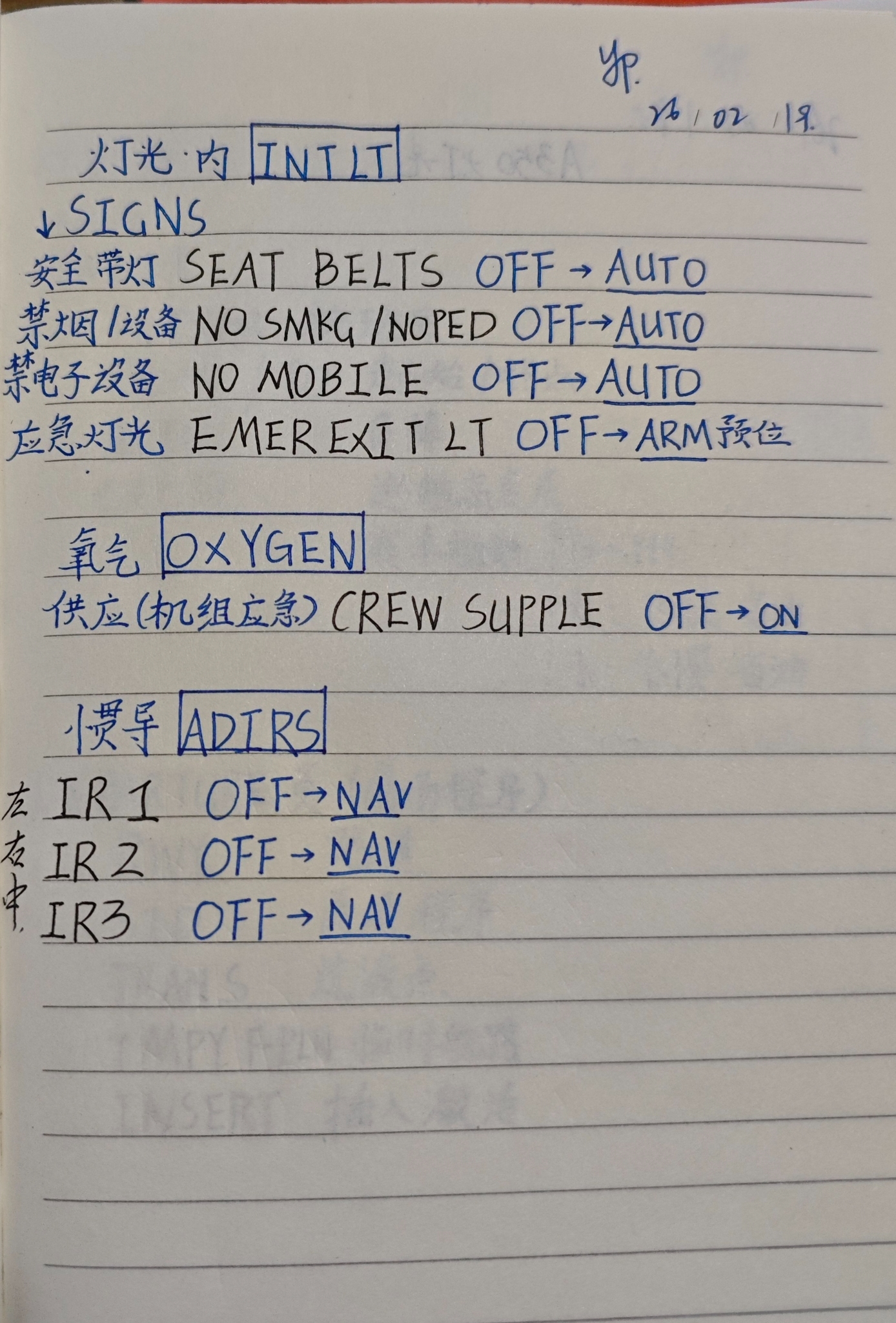 说明:WING 机翼灯、LDG着陆灯、NOSE鼻轮灯,taxi为滑行位